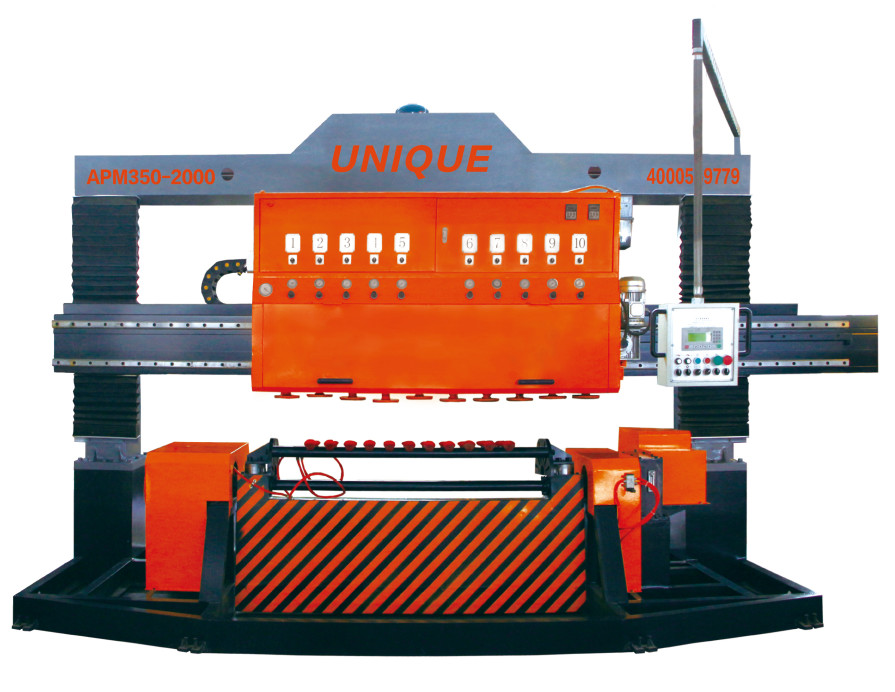 APM-350-2000, Máquina de Polimento de Laje de Arco fixa a laje de arco por ventosa a vácuo, substituindo a fixação convencional por fixação em ambos os lados. Esta solução elimina o desvio de esquadria e inclinação gerado pelas etapas de corte-moagem, ao mesmo tempo que aborda as preocupações do cliente sobre danos nas bordas e ângulos da laje de arco.