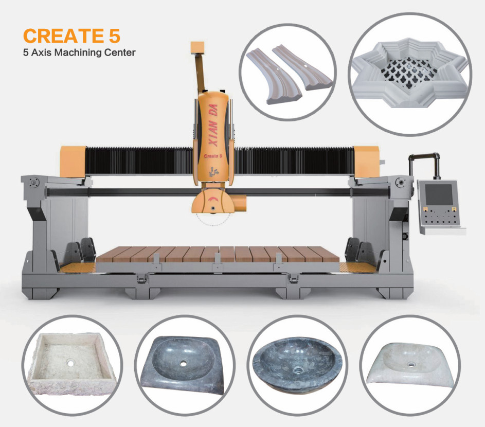 Esta máquina de corte de pontes de 5 eixos personalizada é otimizada para corte de precisão de granito e outros materiais de pedra.Sua construção de alta qualidade e tecnologia CNC avançada tornam-na ideal para projetos exigentes de corte de pedra.