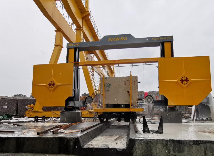 A máquina de acabamento de blocos BWT-3500 apresenta controle CLP com uma estrutura de elevação de trilho de 16 superfícies e 28 rodas rolantes. Sua elevação síncrona através da transmissão intermediária garante um corte estável e alta eficiência. Capaz de acabar quatro superfícies de blocos com uma mesa giratória de 360°, esta máquina é o equipamento ideal para corte de blocos para fatiar e acabamento de blocos.